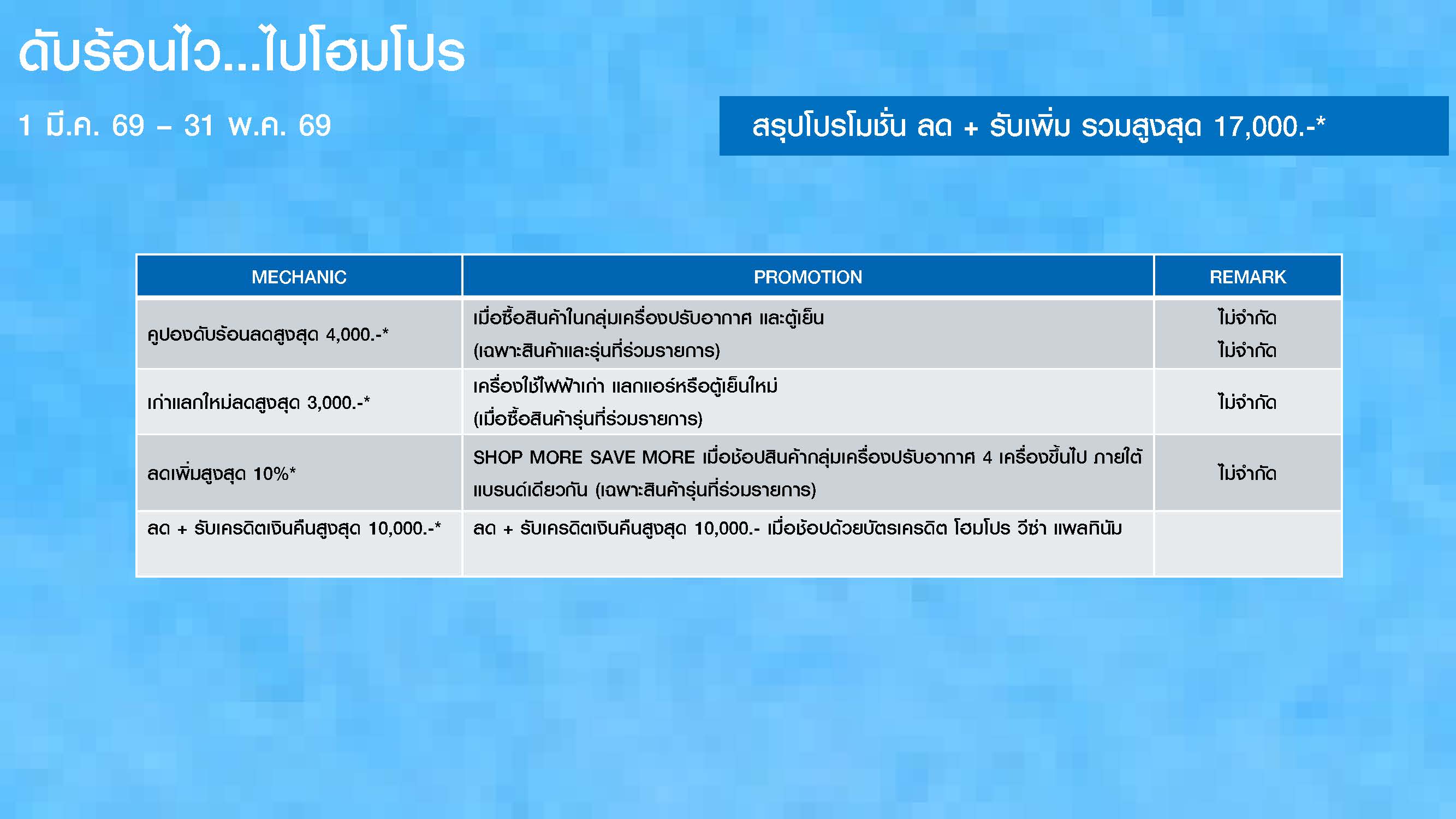 ดับร้อนไว ไปโฮมโปร วันที่ 1 มี.ค. 69 - 31 พ.ค. 69