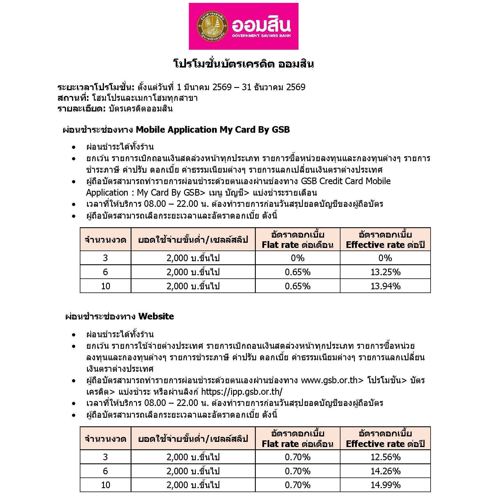 โปรโมชั่น บัตรเครดิต ธนาคารออมสิน